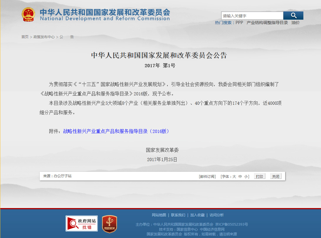 戰(zhàn)略性新興產(chǎn)業(yè)重點(diǎn)產(chǎn)品和服務(wù)指導(dǎo)目錄(2016版)(公告2017年第1號(hào))