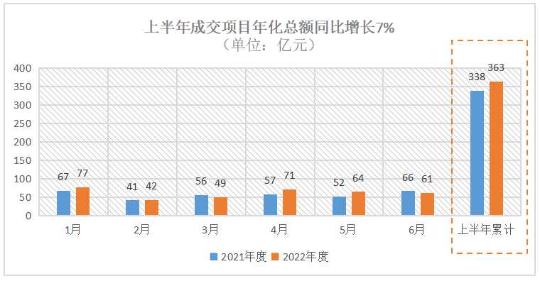 和2021年上半年相比,2022年上半年:成交環(huán)衛(wèi)項目年化額同比增長7%,企業(yè)采購規(guī)模同比增長36%,城市大管家市場規(guī)模同比增長42%,特許經(jīng)營項目開標(biāo)數(shù)量同比下降35%,年化額億元大標(biāo)數(shù)量同比增長47%,市場格局(年化額百強企業(yè)構(gòu)成)出現(xiàn)明顯變化。1、成交項目年化額同比增長7%今年上半年,環(huán)衛(wèi)市場...