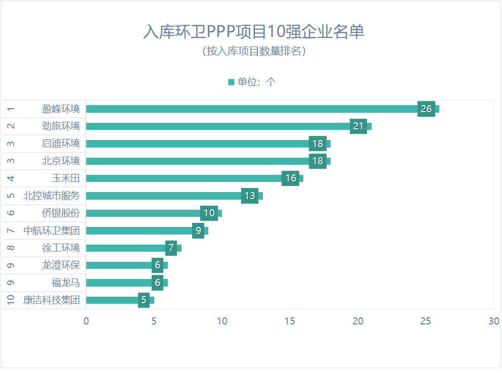 已入庫環(huán)衛(wèi)PPP項(xiàng)目領(lǐng)域,誰是最大贏家?入庫項(xiàng)目:財(cái)政部政府和社會資本合作中心PPP項(xiàng)目庫可以查詢到的項(xiàng)目,包括項(xiàng)目管理庫和項(xiàng)目儲備清單。截止目前,已入庫、且已開標(biāo)的環(huán)衛(wèi)PPP項(xiàng)目總量為302個。按項(xiàng)目量計(jì)算,盈峰環(huán)境占入庫項(xiàng)目總量的12%在302個入庫且已開標(biāo)環(huán)衛(wèi)PPP項(xiàng)目中,盈峰環(huán)境入庫項(xiàng)目數(shù)量...