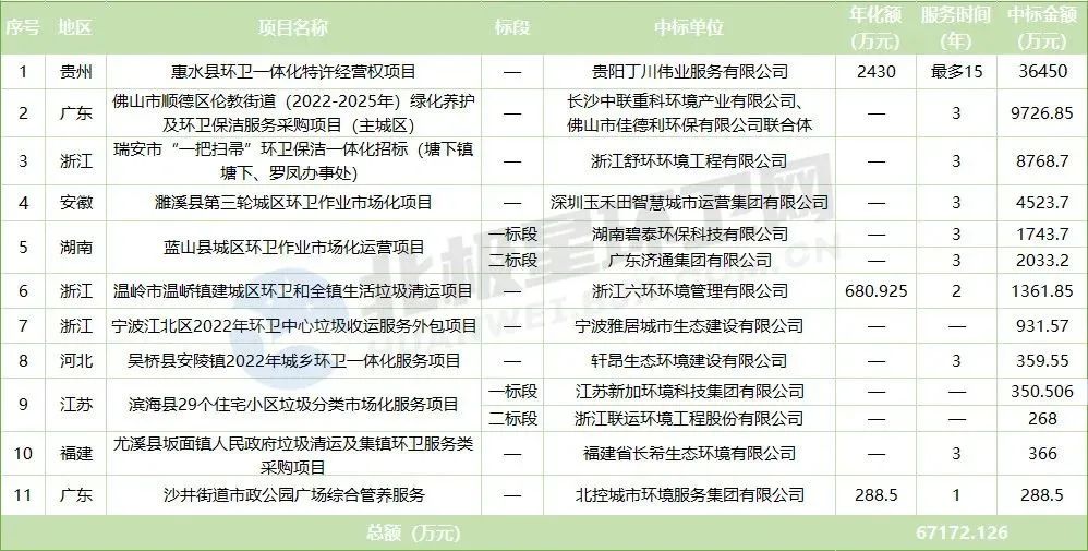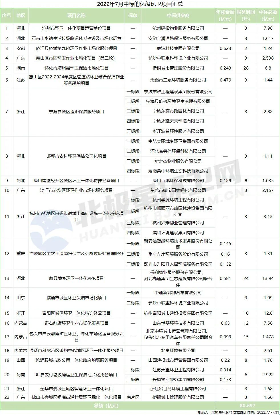 7月共開出2個10億+項(xiàng)目,分別是13.94億元的河北蔚縣城鄉(xiāng)環(huán)衛(wèi)一體化PPP項(xiàng)目和12.8億元的浙江富陽區(qū)城區(qū)環(huán)衛(wèi)一體化特許經(jīng)營項(xiàng)目,這兩個項(xiàng)目分別被保利物業(yè)、河北高速聯(lián)合體以及杭州富陽城投收入囊中。項(xiàng)目匯總?cè)缦拢?1 河北、浙江、廣東三地仍然領(lǐng)先內(nèi)蒙古地區(qū)異軍突起眾所周知,河北、浙江、廣東地區(qū)環(huán)...