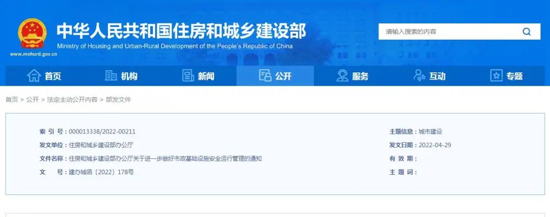住房和城鄉(xiāng)建設(shè)部辦公廳關(guān)于進一步做好市政基礎(chǔ)設(shè)施安全運行管理的通知建辦城函〔2022〕178號各省、自治區(qū)住房和城鄉(xiāng)建設(shè)廳,北京市城市管理委、園林綠化局、水務(wù)局,天津市城市管理委、水務(wù)局,上海市住房和城鄉(xiāng)建設(shè)管委、綠化和市容管理局、水務(wù)局,重慶市住房和城鄉(xiāng)建設(shè)委、經(jīng)濟和信息化委、城市管理局,海南省水...