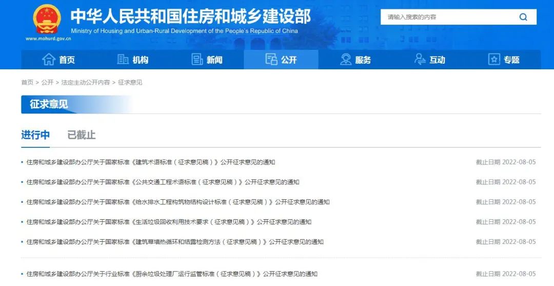 近日,住房和城鄉(xiāng)建設(shè)部辦公廳就國家標(biāo)準(zhǔn)《建筑術(shù)語標(biāo)準(zhǔn)》《公共交通工程術(shù)語標(biāo)準(zhǔn)》《給水排水工程構(gòu)筑物結(jié)構(gòu)設(shè)計(jì)標(biāo)準(zhǔn)》《生活垃圾回收利用技術(shù)要求》《建筑幕墻熱循環(huán)和結(jié)露檢測方法》《廚余垃圾處理廠運(yùn)行監(jiān)管標(biāo)準(zhǔn)》公開征求意見,意見反饋截止時(shí)間為2022年8月5日。點(diǎn)擊下方藍(lán)色標(biāo)題了解標(biāo)準(zhǔn)詳情?!督ㄖg(shù)語標(biāo)準(zhǔn)》...