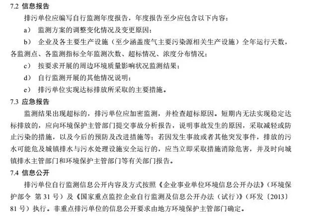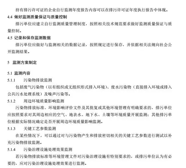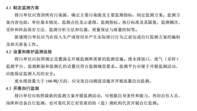 一是自行監(jiān)測的一般要求,即制定監(jiān)測方案、設置和維護監(jiān)測設施、開展自行監(jiān)測、做好監(jiān)測質(zhì)量保證與質(zhì)量控制、記錄保存和公開監(jiān)測數(shù)據(jù)的基本要求;