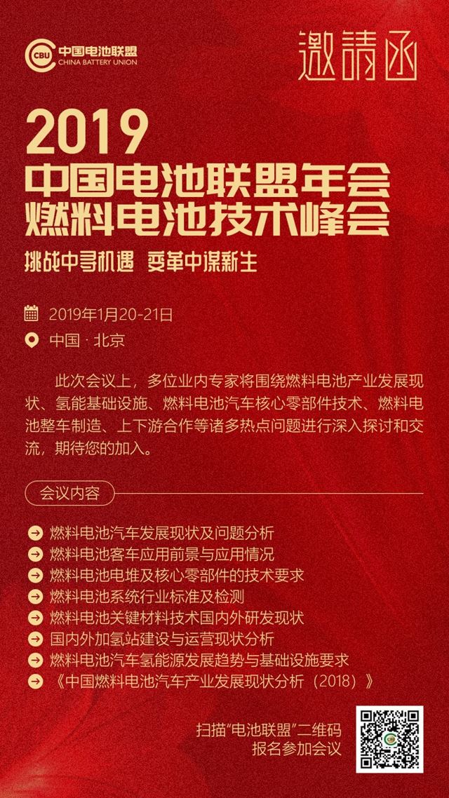 2019年1月20至21日,中國(guó)電池企業(yè)聯(lián)盟年會(huì)暨全國(guó)氫燃料電池汽車(chē)產(chǎn)業(yè)技術(shù)峰會(huì)將在京召開(kāi)。本次峰會(huì)由中國(guó)電池聯(lián)盟、中國(guó)電子節(jié)能技術(shù)協(xié)會(huì)電池專(zhuān)委會(huì)、中國(guó)高科技產(chǎn)業(yè)研究會(huì)、清華大學(xué)、北京理工大學(xué)聯(lián)合舉辦。
