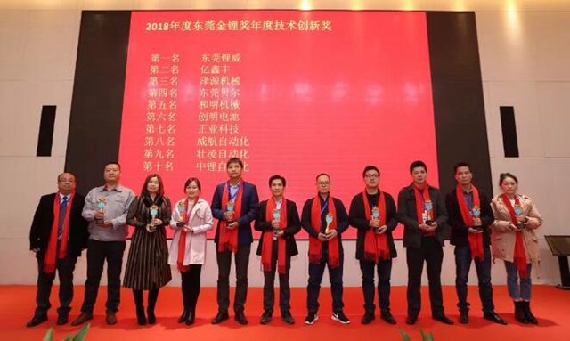 2018年度東莞鋰電業(yè)十大優(yōu)秀品牌獲獎