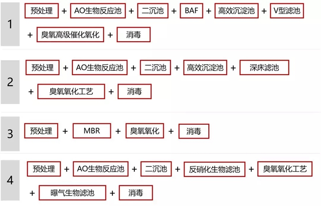 目前類IV類水標(biāo)準(zhǔn)下污水處理廠的大體工藝路線為以下四種類型,被業(yè)內(nèi)評(píng)價(jià)為:這是將能用的技術(shù)都用上了,長(zhǎng)流程、高耗能、高化學(xué)品投入,更復(fù)雜的運(yùn)行管理,以及更為昂貴的建設(shè)運(yùn)行費(fèi)用,使得穩(wěn)定達(dá)標(biāo)的技術(shù)可行性、經(jīng)濟(jì)性等面臨非常大的挑戰(zhàn)。