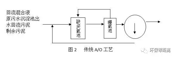 A/O脫氮除磷系統(tǒng),即缺氧、好氧脫氮除磷系統(tǒng)。它是70年代主要由美國、南非等國開發(fā)的具有去除廢水中氮污染物的工藝,同時(shí)對(duì)脫磷亦有一定的效果。其工藝流程是讓廢水依次經(jīng)歷缺氧、好氧兩個(gè)階段,故人們通稱為缺氧、好氧脫氮除磷系統(tǒng),簡稱A/O系統(tǒng)。A/O系統(tǒng)流程簡單、運(yùn)行管理方便,且很容易利用原廠改建,從而提高了出水水質(zhì)。近年來已得到了越來越廣泛的應(yīng)用。A/O法工藝如圖2所示。