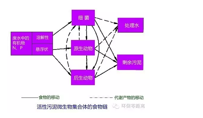 活性污泥中的微生物體主要由各種細菌和原生動物組成,同時還存在著真菌和以輪蟲為主的后生動物。原生動物以細菌為食物,后生動物以細菌和原生動物為食物。在活性污泥中的有機物、細菌、原生動物和后生動物構(gòu)成了一個相對穩(wěn)定的生態(tài)系統(tǒng)和食物鏈。