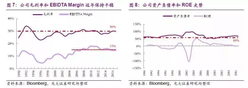 隨著公司SK環(huán)境服務(wù)營業(yè)收入穩(wěn)步增長,公司各項業(yè)務(wù)占比基本保持穩(wěn)定,同時毛利率和EBITDA Margin 在近年也保持穩(wěn)定(分別維持在30%和15%左右);另一方面,公司資產(chǎn)負債率在收購SK 化學(xué)分部飆升至90%以后,通過穩(wěn)健經(jīng)營逐步回落至60%的平均水平,但是公司凈利率近年來表現(xiàn)不盡如人意,影響ROE持續(xù)走低。