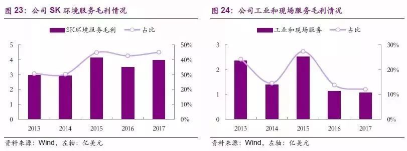 SK環(huán)境及性能產(chǎn)品服務(wù)的重要性在逐步提升。公司在2012年收購Safety-Kleen 后,SK 環(huán)境及性能產(chǎn)品服務(wù)成為了繼傳統(tǒng)危廢技術(shù)服務(wù)之外的第二大業(yè)務(wù),雖然業(yè)務(wù)收入絕對額變化不大,但業(yè)務(wù)收入占比逐年上升,且該項業(yè)務(wù)為公司帶來了可觀的毛利,甚至超過了傳統(tǒng)的危廢處置業(yè)務(wù),2017年該項業(yè)務(wù)毛利占比達45.12%,是公司業(yè)績的重要支撐。2016年,公司為了更好地提供一站式服務(wù),以2.048億美元戰(zhàn)略性收購與石油產(chǎn)品銷售相關(guān)的7家公司業(yè)務(wù),使廢油業(yè)務(wù)形成供-產(chǎn)-銷一體化的經(jīng)營模式。廢油一旦收集完畢,就會被送到煉油廠進行處理,清除掉所有的污染物和雜質(zhì),再作為公司的產(chǎn)品返回市場。廢油業(yè)務(wù)的全產(chǎn)業(yè)鏈覆蓋將進一步最大化廢油業(yè)務(wù)的利益獲取。
