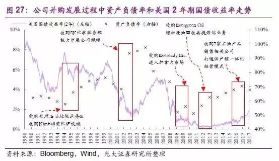 (1)內(nèi)因:發(fā)展戰(zhàn)略清晰,并購時機得當(dāng)。從早期的“橫向”并購穩(wěn)步擴大公司規(guī)模,到危廢行業(yè)轉(zhuǎn)型期抓住機會并購SK 一舉做大公司體量,再到危廢成熟期的跨行業(yè)并購多元化發(fā)展穩(wěn)固公司危廢處理龍頭地位,公司在不同階段的發(fā)展戰(zhàn)略十分清晰;同時公司的幾個重要并購均處在融資成本相對合理的時期,資產(chǎn)負債率雖然在并購發(fā)生時有所提升,但后續(xù)的管控使得資產(chǎn)負債率一直處于相對平穩(wěn)水平。