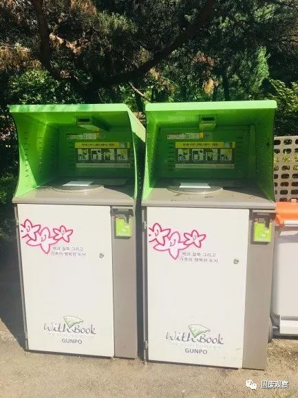 下圖中,左邊的大桶為“食物垃圾回收桶”,右邊的小桶為食物垃圾塑料袋收集桶,兩個(gè)桶都帶有腳閥,居民可以用腳閥打開桶蓋,避免弄臟雙手。食物垃圾桶旁邊通常設(shè)有洗手池及肥皂,丟棄垃圾時(shí)弄臟雙手可以清洗。回收費(fèi)用由整個(gè)小區(qū)的人一起平攤,收費(fèi)包含在每個(gè)月的物業(yè)管理費(fèi)中。以軍浦市某小區(qū)為例,2018年1-7月,每家每月的食物垃圾處理費(fèi)約為人民幣4-6元。