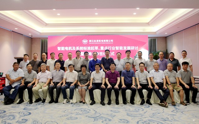 炎炎夏日酷暑難當(dāng),不敵潮鄉(xiāng)如火熱情。2019年7月30日,來自水泥、鋼鐵、電機(jī)、泵、科研院所等多個(gè)行業(yè)領(lǐng)域的60余位行業(yè)專家學(xué)者、部門領(lǐng)導(dǎo)、企業(yè)大咖等齊聚浙江永發(fā)機(jī)電有限公司(下文簡(jiǎn)稱“永發(fā)機(jī)電”),共同見證“智能電機(jī)及系統(tǒng)標(biāo)準(zhǔn)起草、重點(diǎn)行業(yè)智能發(fā)展研討暨戰(zhàn)略合作簽約儀式”,深度探索包括水泥、鋼鐵、電機(jī)、泵等跨行業(yè)、跨領(lǐng)域智能化發(fā)展新思路與新方向。