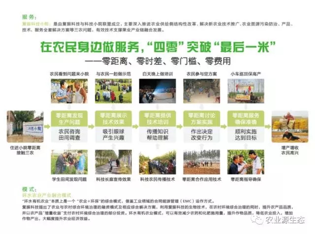 復振科技未來也在探索區(qū)域性環(huán)境解決方案平臺。平臺將與E20環(huán)境平臺、新農村建設聯(lián)盟,在全國建立基于區(qū)域綜合環(huán)境/水流域環(huán)境的原產(chǎn)地農業(yè)生態(tài)化能力。同時復振科技通過產(chǎn)業(yè)需求與地方政府聯(lián)合建立道地藥材、地理標志產(chǎn)品、有機產(chǎn)品的原產(chǎn)地環(huán)境綜合支撐能力,提供基于產(chǎn)業(yè)需求的生態(tài)環(huán)境規(guī)劃與項目實施。未來復振科技將建立基于環(huán)水農業(yè)的農業(yè)+環(huán)保增量PPP模式;借鑒工業(yè)領域的合同能源管理(EMC)運作模式,復振科技提出了農業(yè)與農村綜合環(huán)境治理的融資模式及相應綜合解決方案,同時企業(yè)也將吸引更多合作伙伴合作共同推進平臺的發(fā)展。