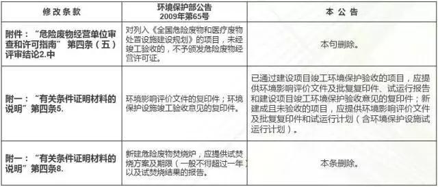 2016年10月25日,為做好新建危險廢物利用處置項目在試生產(chǎn)期間經(jīng)營許可證的申請和審批工作,環(huán)保部對《危險廢物經(jīng)營單位審查和許可指南》部分條款進行修改,對照表如下: