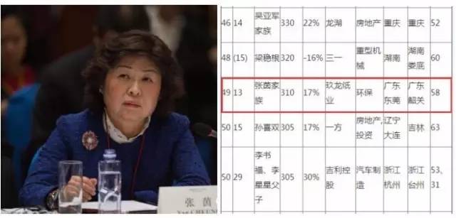 第49位 玖龍紙業(yè) 張茵家族 310億元