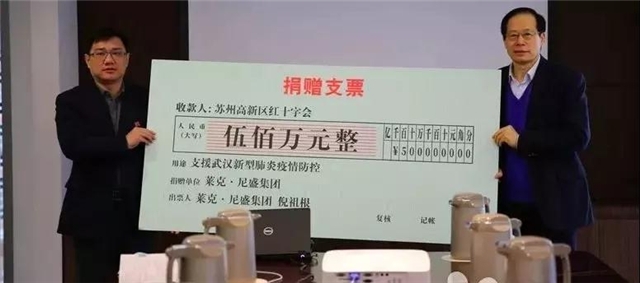 1月26日上午,位于蘇州高新區(qū)獅山橫塘街道企業(yè)萊克·尼盛集團(tuán),向蘇州高新區(qū)紅十字會(huì)捐贈(zèng)500萬(wàn)元,用于支援武漢新型冠狀病毒感染引發(fā)肺炎疫情的防控工作。