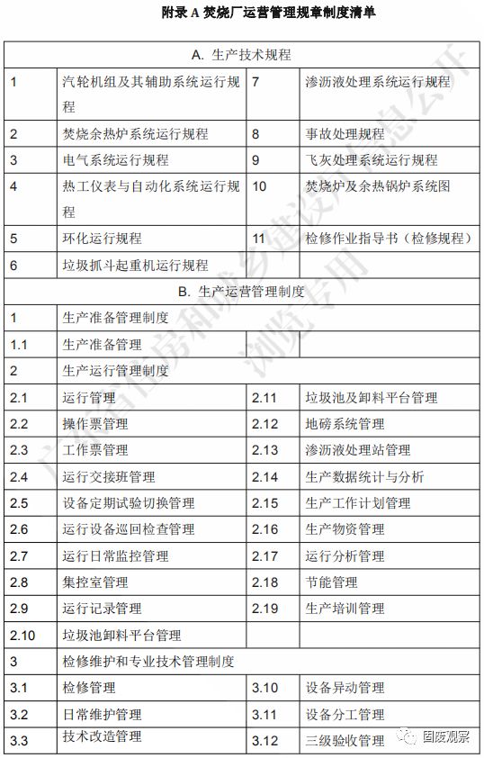 4.3.1 新建、擴建焚燒廠應(yīng)建立生產(chǎn)管理規(guī)章制度,可參考附錄的制度清單編寫。