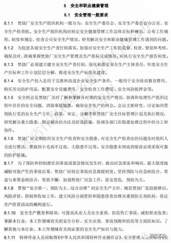 3.0.1 焚燒廠運營管理應(yīng)推行《質(zhì)量管理體系》GB/T 19001、《職業(yè)健康安全管理體系》 GB/T 28001 和《環(huán)境管理體系》GB/T 24001。