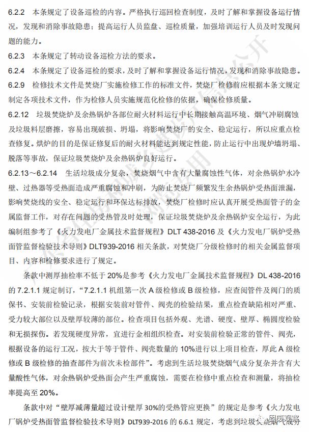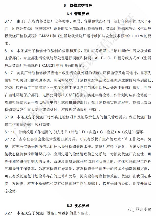 3.0.5 焚燒廠設(shè)備、系統(tǒng)及附屬設(shè)施檢修應(yīng)符合“預(yù)防為主、計劃檢修”的要求,保證 檢修安全和達到檢修質(zhì)量要求,保障焚燒廠設(shè)備、系統(tǒng)及附屬設(shè)施處于良好可用狀態(tài)。