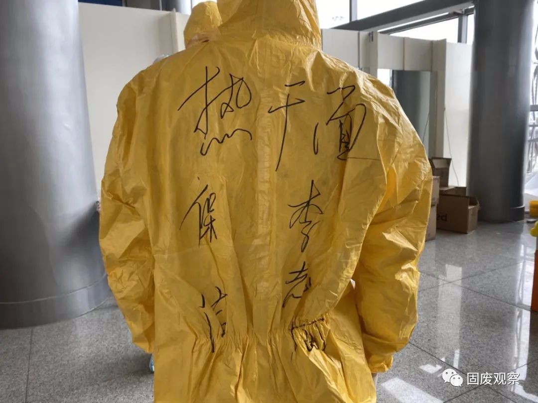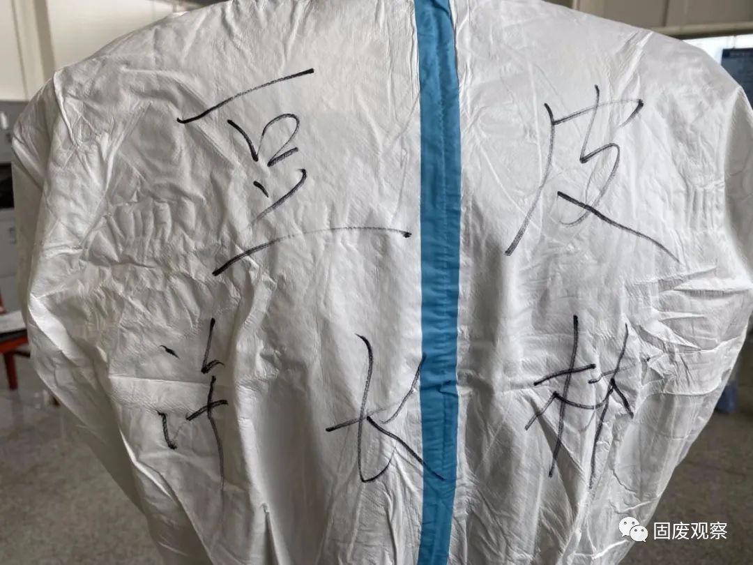 許長林將他的姓名和“綽號”寫在防護服外