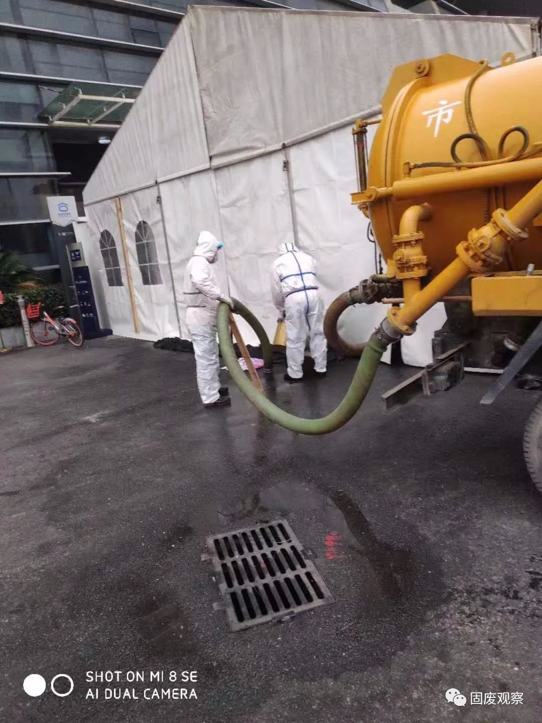 劉立山和隊友正在方艙醫(yī)院外開展吸污工作