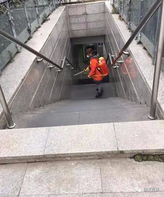 54歲錢秋玉正在對武昌火車站地下通道開展消殺