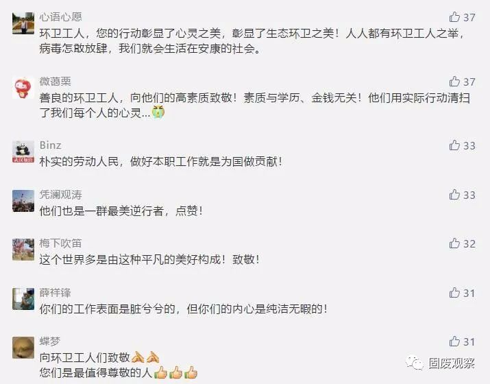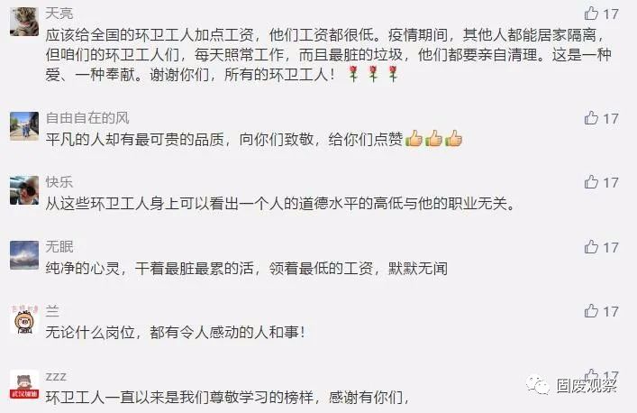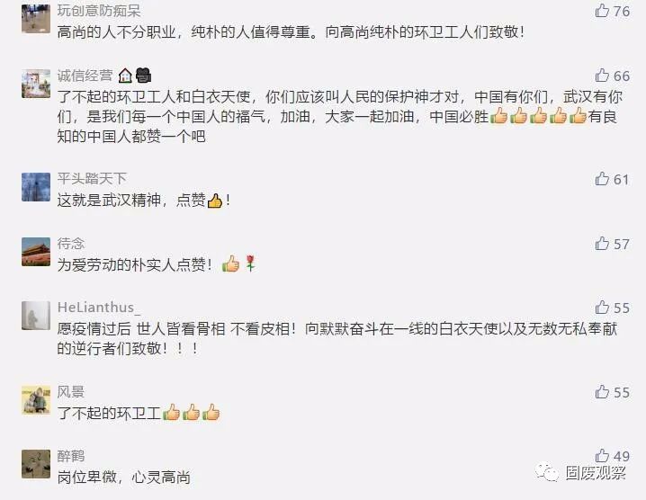 近日,荊楚網一篇《武漢隔離的環(huán)衛(wèi)工退房后,酒店經理邊查房邊抹淚》的微信,讓無數(shù)讀者落淚,并紛紛點贊:“她們是最美最可敬的人!”“平凡的崗位造就了不平凡的人”“他們不僅打掃看得見的垃圾,還能清潔我們心靈里的灰塵”“我含著眼淚向這群擁有最美心靈的姐妹們致敬!”“平凡的人們給我最多感動!”