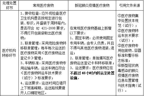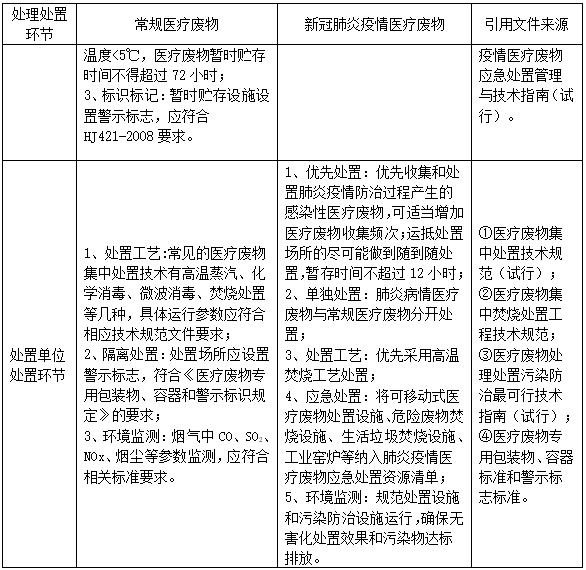 表 新冠肺炎疫情醫(yī)療廢物處理處置全過(guò)程環(huán)境管理要求