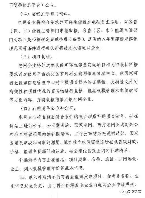 3、符合國家可再生能源價格政策,上網(wǎng)電價已獲得價格主管部門批復(fù)。根據(jù)文件要求,2020年4月30日前,應(yīng)完成第一階段補貼清單的審核發(fā)布工作;6月30日前,完成首批補貼清單的審核發(fā)布工作,并為下一批補貼清單審核發(fā)布做好準備。