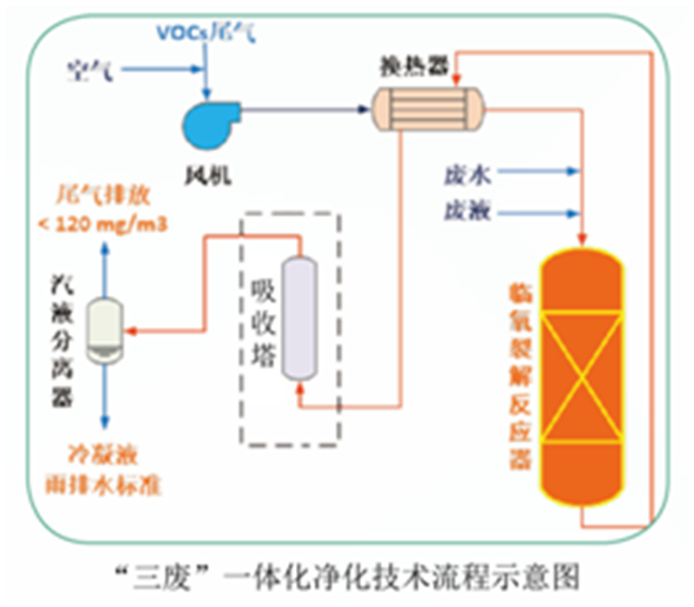 在臨氧裂解反應(yīng)器內(nèi),可以同時處理含有機污染物的廢氣、廢水和廢液,使氣、水達標排放。