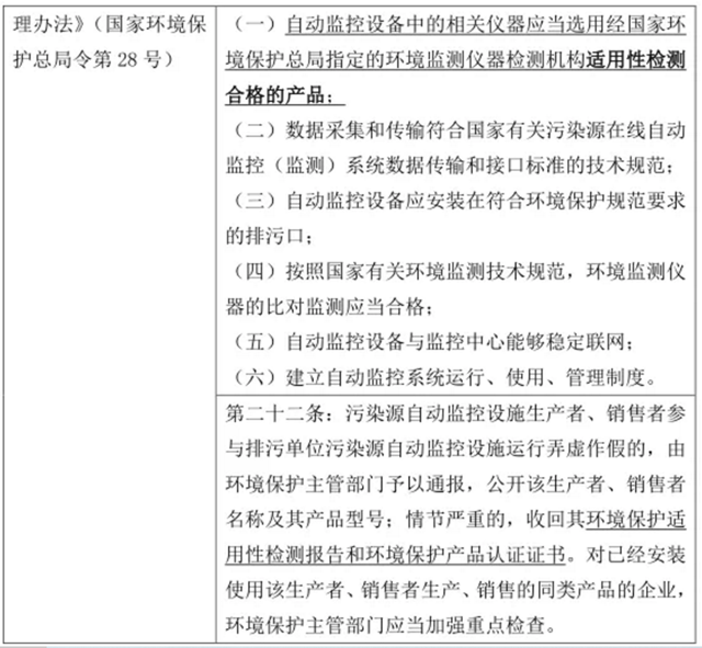 根據(jù)上述法律規(guī)定,安裝和使用在線監(jiān)測設備應當符合國家的規(guī)定和相應規(guī)范,尤其在自動監(jiān)控設備中相關儀器的選用上。目前我國對環(huán)境保護產品實行認定認證制度,由中國環(huán)境保護產業(yè)協(xié)會(以下簡稱“中環(huán)協(xié)”)進行環(huán)保產品認證,中國環(huán)境監(jiān)測總站(以下簡稱“監(jiān)測總站”)進行適用性檢測。在實踐中,中環(huán)協(xié)進行環(huán)保產品認證以監(jiān)測總站出具的適用性檢測報告作為其認證基礎條件。除個別省份對環(huán)保產品認證有強制性備案要求外,大部分省份采取自愿認證原則,而在線監(jiān)測產品的適用性檢測則是《污染源自動監(jiān)控管理辦法》明文規(guī)定作為儀器選用的前提條件。