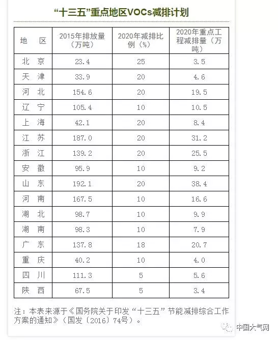 據(jù)悉,到2020年,我國VOCs排放總量下降10%以上。然而,根據(jù)《“十三五”節(jié)能減排綜合工作方案》,浙江至2020年的VOCs減排比是20%,僅次于北京25%的減排比例。