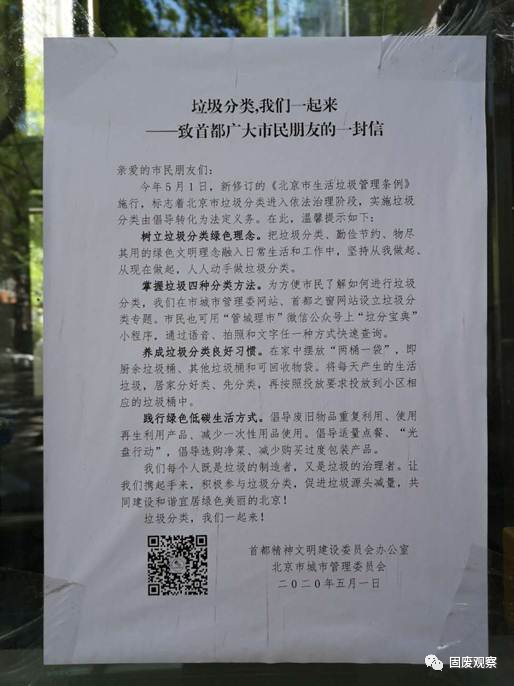 垃圾分類的宣傳和指導(dǎo)如何進(jìn)一步加強(qiáng)?藍(lán)藍(lán)天工作室記者觀察自己所在的小區(qū)發(fā)現(xiàn),設(shè)了分類垃圾桶,旁邊沒有專業(yè)指導(dǎo)人員,居民分不分類、分得對(duì)不對(duì),基本全憑自覺。上海市剛推行垃圾分類的時(shí)候,經(jīng)常有志愿者站在垃圾桶旁問前來投放的居民“你是什么垃圾”。為啥北京很多小區(qū)目前沒人問這樣的問題?國(guó)務(wù)院發(fā)展研究中心資源與環(huán)境政策研究所副所長(zhǎng)常紀(jì)文表示,從5月1日《條例》開始執(zhí)行后,他天天去附近小區(qū)拍照檢查??傮w看來垃圾分類已經(jīng)起步了,各小區(qū)基本都配備了廚余垃圾桶等,但仍然存在一些問題。例如,部分小區(qū)內(nèi)沒有宣傳橫幅,分類垃圾桶邊沒有配備專人進(jìn)行指導(dǎo)監(jiān)督。一些小區(qū)宣傳和指導(dǎo)不到位,導(dǎo)致居民有分類意識(shí),但缺乏分類知識(shí)。“我在不少小區(qū)看到大家把外賣餐盒跟廚余垃圾扔在一起,但它屬于使用過的、沾了菜湯油污的塑料類制品,應(yīng)該投放到其他垃圾桶中。”常紀(jì)文說。在有的小區(qū),為保證每個(gè)分類垃圾桶旁都有指導(dǎo)人員,取消了一些垃圾桶,讓居民走到較遠(yuǎn)的投放點(diǎn)扔垃圾。常紀(jì)文表示,他觀察到一些小區(qū)內(nèi)垃圾桶分布不均勻,有些樓棟下缺少?gòu)N余垃圾桶,有些沒有其他垃圾桶,“至少應(yīng)該以某種形式讓居民知曉,小區(qū)內(nèi)哪里有對(duì)應(yīng)的分類垃圾桶,方便精準(zhǔn)投放。”劉建國(guó)認(rèn)為,現(xiàn)階段,應(yīng)進(jìn)一步加大宣傳教育和組織動(dòng)員力度,讓垃圾分類真正“熱起來”;層層落實(shí)各級(jí)政府相關(guān)職能部門職責(zé),特別是切實(shí)落實(shí)管理責(zé)任人責(zé)任,將壓力和責(zé)任傳導(dǎo)到每個(gè)居民,讓垃圾分類“硬起來”;統(tǒng)籌疫情防控和垃圾分類兩項(xiàng)工作,讓二者有機(jī)結(jié)合,互相促進(jìn),讓垃圾分類“動(dòng)起來”;北京的黨政機(jī)關(guān)、高校科研院所、企業(yè)總部、社會(huì)組織密集,應(yīng)帶頭做好源頭減量和垃圾分類,為居民作出表率、增添信心,讓垃圾分類“亮起來”。“未來,要從執(zhí)法保障、政策激勵(lì)、長(zhǎng)效機(jī)制、科學(xué)管理、多元共治、科技支撐等不同層面,不斷完善和優(yōu)化垃圾分類投放、收集、運(yùn)輸、處理全鏈條,倒逼生產(chǎn)生活環(huán)節(jié)源頭減量,分類物品物盡其用各得其所,降低垃圾分類的綜合社會(huì)成本,促進(jìn)居民養(yǎng)成良好習(xí)慣,提升社會(huì)文明水平?!眲⒔▏?guó)說。上圖:北京市有關(guān)部門致市民的一封信。(劉毅攝) 如何避免運(yùn)輸和處置中出現(xiàn)混裝混運(yùn)現(xiàn)象?不少居民表示,推行生活垃圾強(qiáng)制分類以來,自己所在的小區(qū),垃圾分類的宣傳力度明顯加強(qiáng),做到了分類投放、分類運(yùn)輸。然而,也有居民表示,自己辛辛苦苦分好類,甚至把快遞盒上的膠帶都刮下來按類別投放,結(jié)果發(fā)現(xiàn)垃圾車還是把所有垃圾一股腦混倒在一起運(yùn)走。劉建國(guó)表示,“前端分類,后端混合”是個(gè)廣受詬病的老問題,實(shí)際上是垃圾分類系統(tǒng)前后端不配套造成的?!侗本┦猩罾芾?xiàng)l例》中約束的一個(gè)主要對(duì)象,是從事垃圾收集運(yùn)輸處理的企業(yè),處罰門檻很低,處罰力度很大,就是為了解決先分后混、混裝混運(yùn)的問題。“居民看到混裝混運(yùn)現(xiàn)象,可以馬上投訴,督促企業(yè)做好分類收集運(yùn)輸處理。當(dāng)然,咱們自己也要做好分類投放,不能以混裝混運(yùn)為借口而不履行義務(wù)。只有大家各負(fù)其責(zé),才能徹底杜絕混裝混運(yùn)現(xiàn)象?!眲⒔▏?guó)說。常紀(jì)文認(rèn)為,前端后端匹配才符合垃圾分類的目的。對(duì)此需要標(biāo)本兼治:治本,需建設(shè)相匹配的廚余垃圾處置設(shè)施以及干垃圾的焚燒或填埋設(shè)施。治標(biāo),應(yīng)采取嚴(yán)格的處罰措施,沒有處罰,小區(qū)物業(yè)和環(huán)衛(wèi)部門往往會(huì)存有僥幸心理,使垃圾分類工作停滯不前;只有嚴(yán)格執(zhí)行懲處措施,才能對(duì)垃圾分類執(zhí)行方起到震懾作用,后端的各個(gè)環(huán)節(jié)才能順暢配合。為更好解決后端混運(yùn)問題,常紀(jì)文還建議,改良垃圾運(yùn)輸車輛。“歐洲有許多垃圾分類車輛是能同時(shí)運(yùn)輸兩種垃圾的,我們也可以在設(shè)計(jì)方面做些改動(dòng),在車輛內(nèi)部進(jìn)行分隔,讓一輛車既可以運(yùn)廚余垃圾也可以運(yùn)其他垃圾,降低成本的同時(shí),方便操作?!?/span>劉建國(guó)認(rèn)為,疫情防控與垃圾分類這兩件事并不沖突。現(xiàn)在疫情防控已經(jīng)進(jìn)入到常態(tài)化階段,可以把疫情防控中形成的好經(jīng)驗(yàn)好做法好機(jī)制,如社區(qū)精細(xì)化管理、居民的規(guī)則意識(shí)和衛(wèi)生習(xí)慣、鄰里之間互相幫助互相監(jiān)督等,順勢(shì)轉(zhuǎn)化為垃圾分類的推動(dòng)力。來源 | 人民日?qǐng)?bào)中央廚房·藍(lán)藍(lán)天工作室