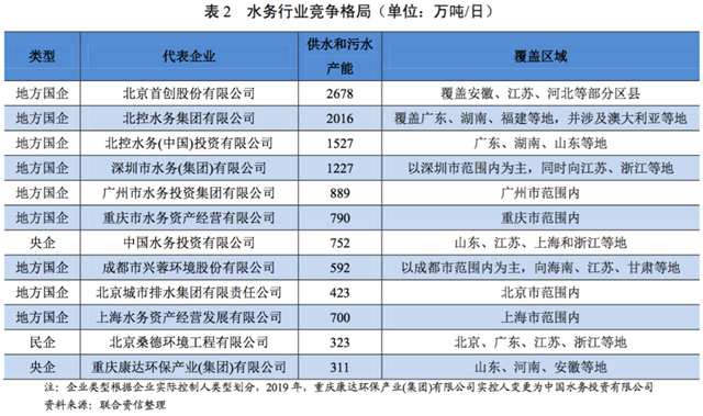 綜上,地方國有水務企業(yè)區(qū)域壟斷性突出,實力較強的地方國有企業(yè)和央企等行業(yè)龍頭利用資金和技術(shù)優(yōu)勢積極參與水務衍生行業(yè)投資及財政實力偏弱的區(qū)縣城鎮(zhèn)供排水項目。但水務行業(yè)涉及國計民生,競爭格局基本穩(wěn)定,預期水務行業(yè)整體仍呈現(xiàn)區(qū)域壟斷和行業(yè)龍頭集中度提升同時并存的競爭格局。