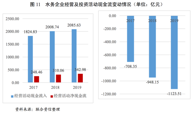 水務企業(yè)現(xiàn)金流狀況較好,收現(xiàn)能力較強,投資活動現(xiàn)金流出規(guī)模較大,未來隨著污水處理及水環(huán)境治理領(lǐng)域的需求增長,預計投資需求仍將持續(xù)較大規(guī)模。