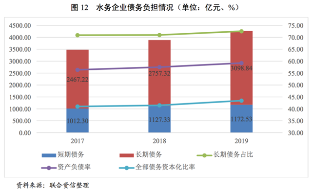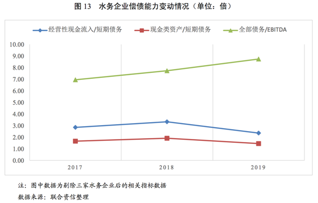 [5]聯(lián)合資信口徑水務企業(yè)樣本分析系以2019年底供水和污水收入占營業(yè)收入的45%及以上樣本口徑為基礎(chǔ)對比近三年指標變化情況