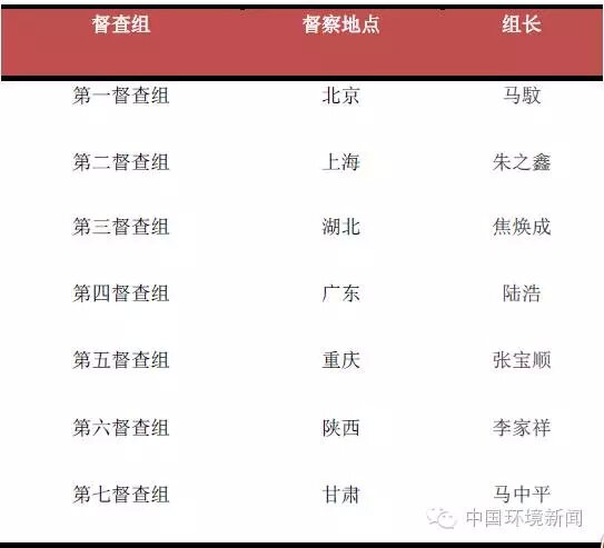 2016第二批環(huán)保督查組督察地點及人員安排