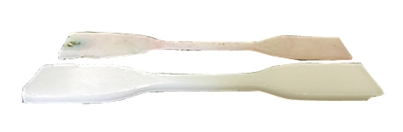 在海水里浸泡3個(gè)月的海水可降解塑料樣品(上)和良好保存的樣品(下)對(duì)比