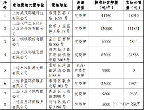 注:1、實(shí)際處置規(guī)模取整數(shù);2、上海永程固廢處理有限公司危廢和醫(yī)廢總焚燒處置能力為9900噸/年,2019年12月31日發(fā)證,2019年未實(shí)際處置。