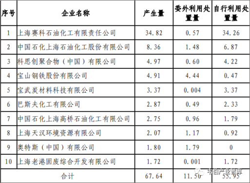 上海市危險(xiǎn)廢物產(chǎn)生量前10位的企業(yè),其產(chǎn)生量合計(jì)67.64萬噸,占比上海市危險(xiǎn)廢物產(chǎn)生總量的46.92%。