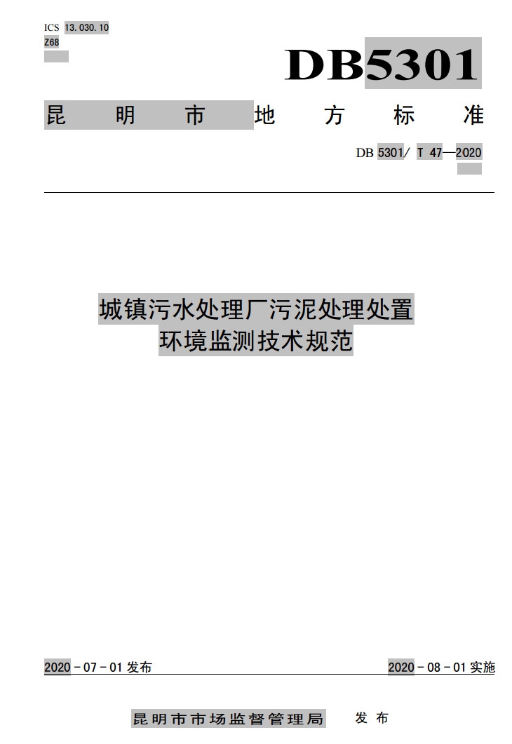 昆明市地方標(biāo)準(zhǔn)《城鎮(zhèn)污水處理廠污泥處理處置環(huán)境監(jiān)測技術(shù)規(guī)范》(DB 5301/ T 47—2020)于7月1日發(fā)布,將于2020年8月1日施行。