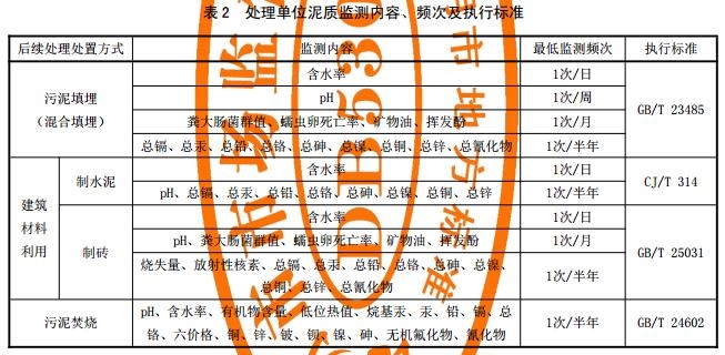 b) 擬采取填埋、建筑材料利用及焚燒的泥質(zhì)監(jiān)測應(yīng)按表 2 執(zhí)行。