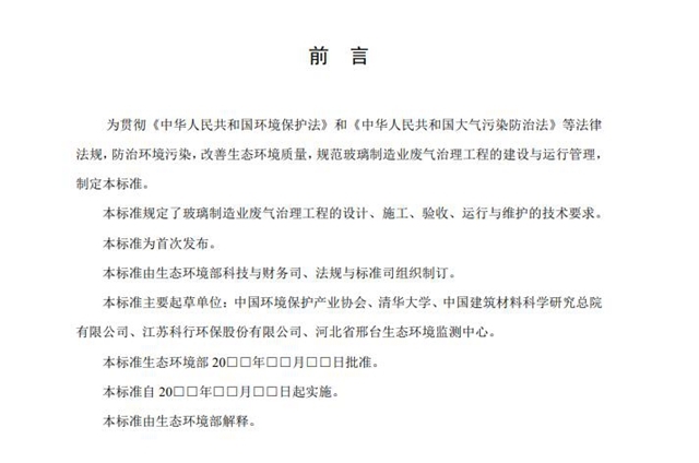為貫徹《中華人民共和國環(huán)境保護(hù)法》,保護(hù)環(huán)境,防治環(huán)境污染,我部組織開展了國家環(huán)境保護(hù)標(biāo)準(zhǔn)《玻璃制造業(yè)廢氣治理工程技術(shù)規(guī)范》的編制工作。