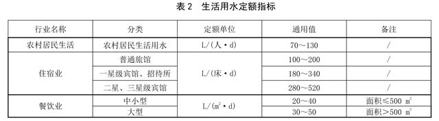 主要參考DB36/T 419來(lái)確定用水量,由于農(nóng)村生活用水量因區(qū)域、生活習(xí)慣差異等因素波動(dòng)較大,九江市農(nóng)村地區(qū)生活用水量可按表2選用。
