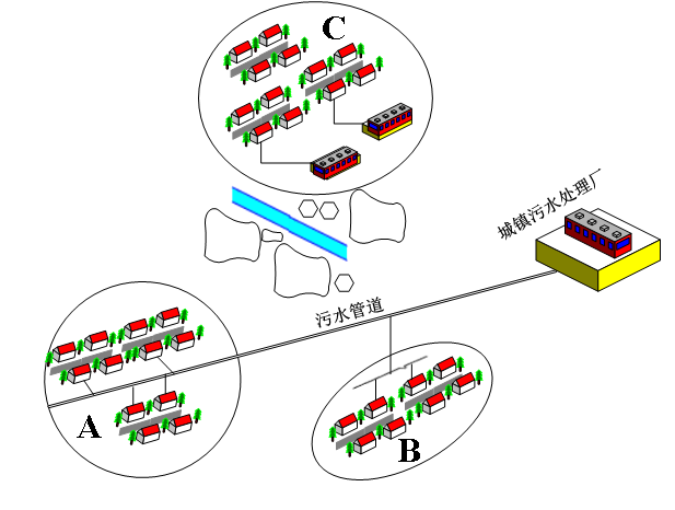 針對(duì)村莊人口數(shù)量較多、污水排放量較大、分布較為集中的情況,對(duì)一定區(qū)域內(nèi)產(chǎn)生的生活污水通過(guò)較大范圍的管網(wǎng)進(jìn)行收集,輸送至指定地點(diǎn),并進(jìn)行處理的方式。