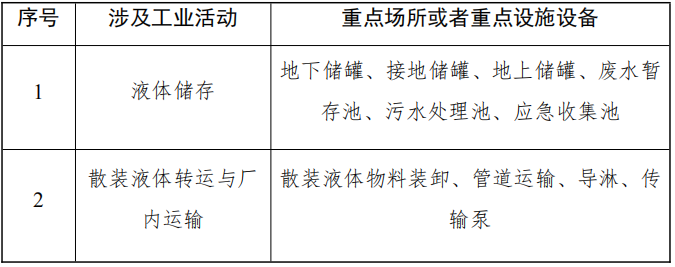 表2有潛在土壤污染隱患的重點(diǎn)場所或者重點(diǎn)設(shè)施設(shè)備