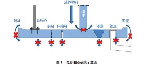 二次保護(hù)設(shè)施多采用普通混凝土等材料,可起到臨時阻截污染物的作用,難以達(dá)到防滲阻隔系統(tǒng)的防泄漏、防滲漏效果。