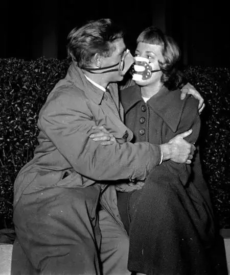 情侶們帶著口罩在戶外約會(huì)。