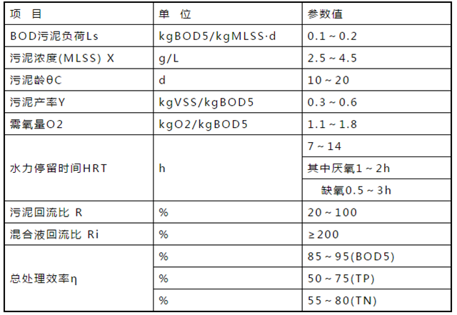 生物脫氮除磷的主要設計參數